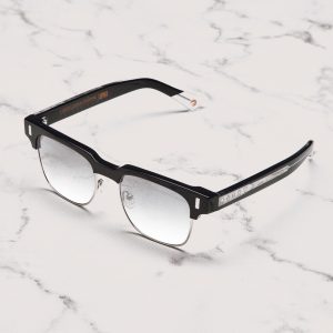 This browline frame is designed for the gentleman who values look and practicality. It features a sleek metal design, fits lenses up to minus 6, and has a durable core wire that showcases engraved poker card suits for a unique touch.